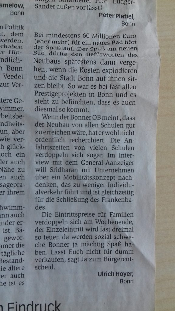 Auf das GA-Interview mit dem OB folgte eine Reihe bemerkenswerter Leserbriefe, die es hier nachzulesen gibt: